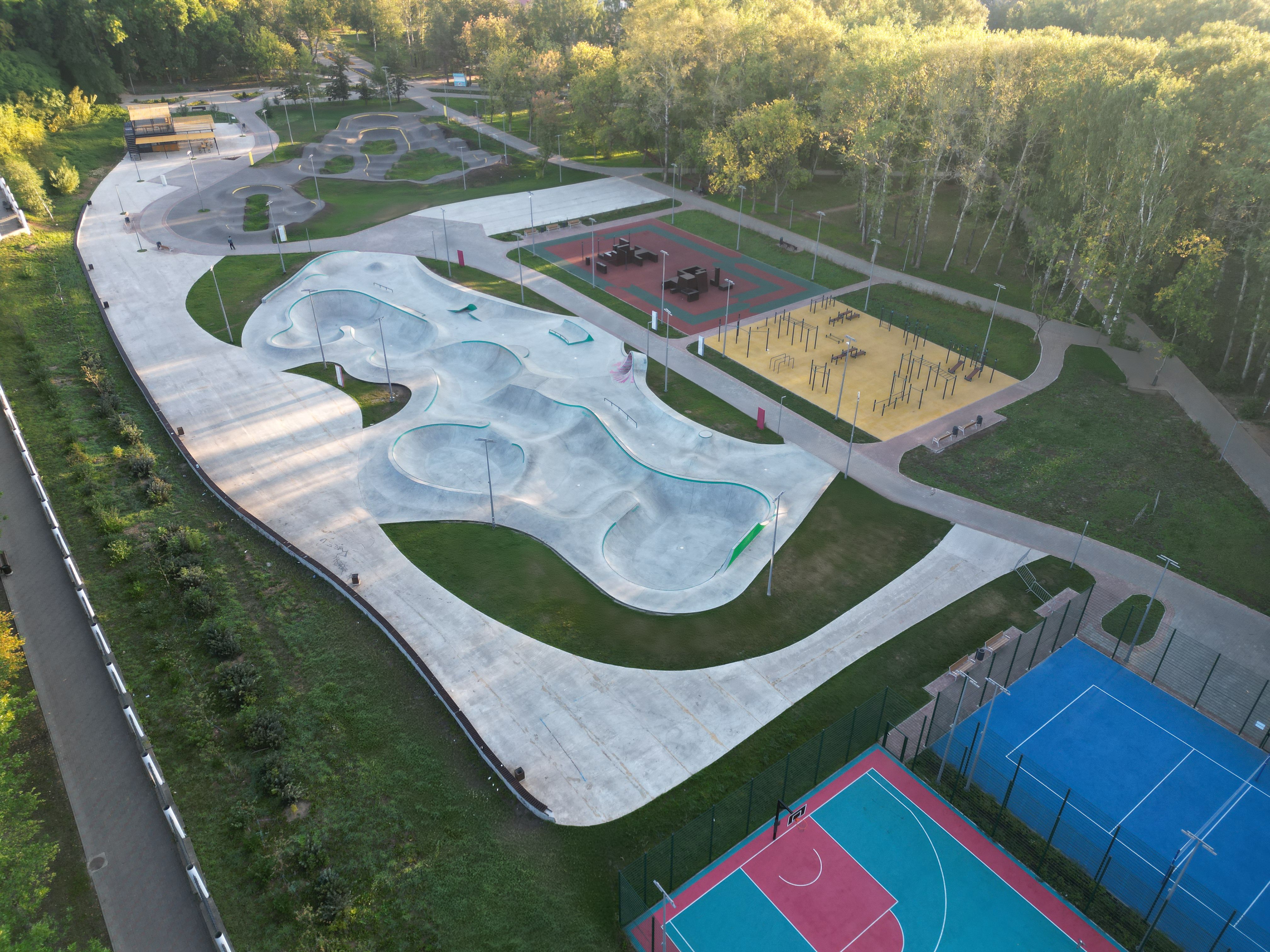 Экстрим-зона стала частью спортивного кластера, предлагая возможности не только для катания на скейтах и BMX, но и для занятий на воркаут-площадке и деревянном паркуре.