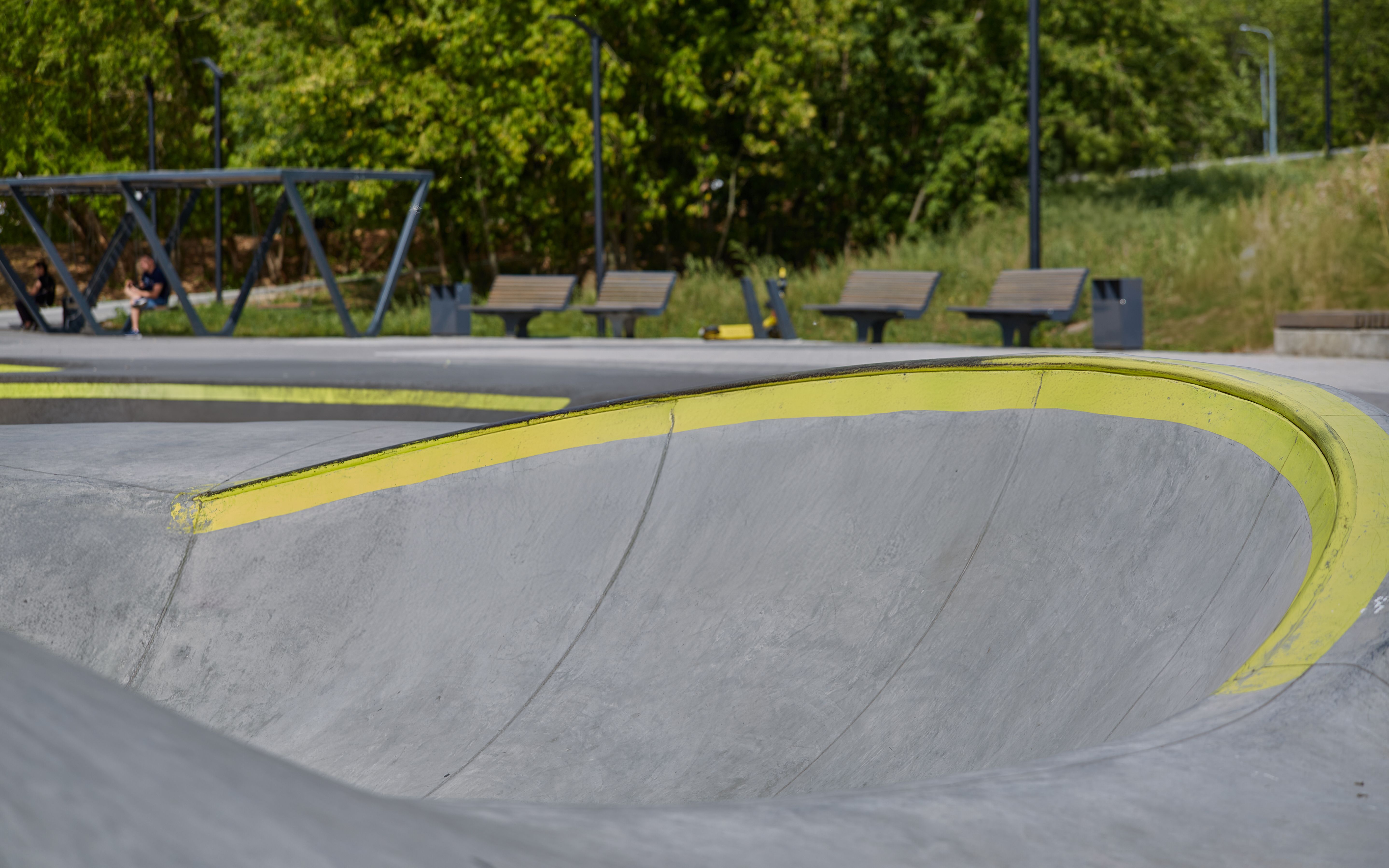 Парк "Экоберег", относящийся к категории L, включает скейт-парк, памп-трек и асфальтовый боул, что делает его идеальным местом для райдеров всех уровней. Скейт-парк оборудован фигурами для отработки трюков различной сложности, а асфальтовый боул является комфортной зоной для младших спортсменов. Важной частью парка является обширная общественная зона с перголой, амфитеатром и зонами отдыха, что делает его не только спортивным, но и семейным местом для встреч и отдыха.