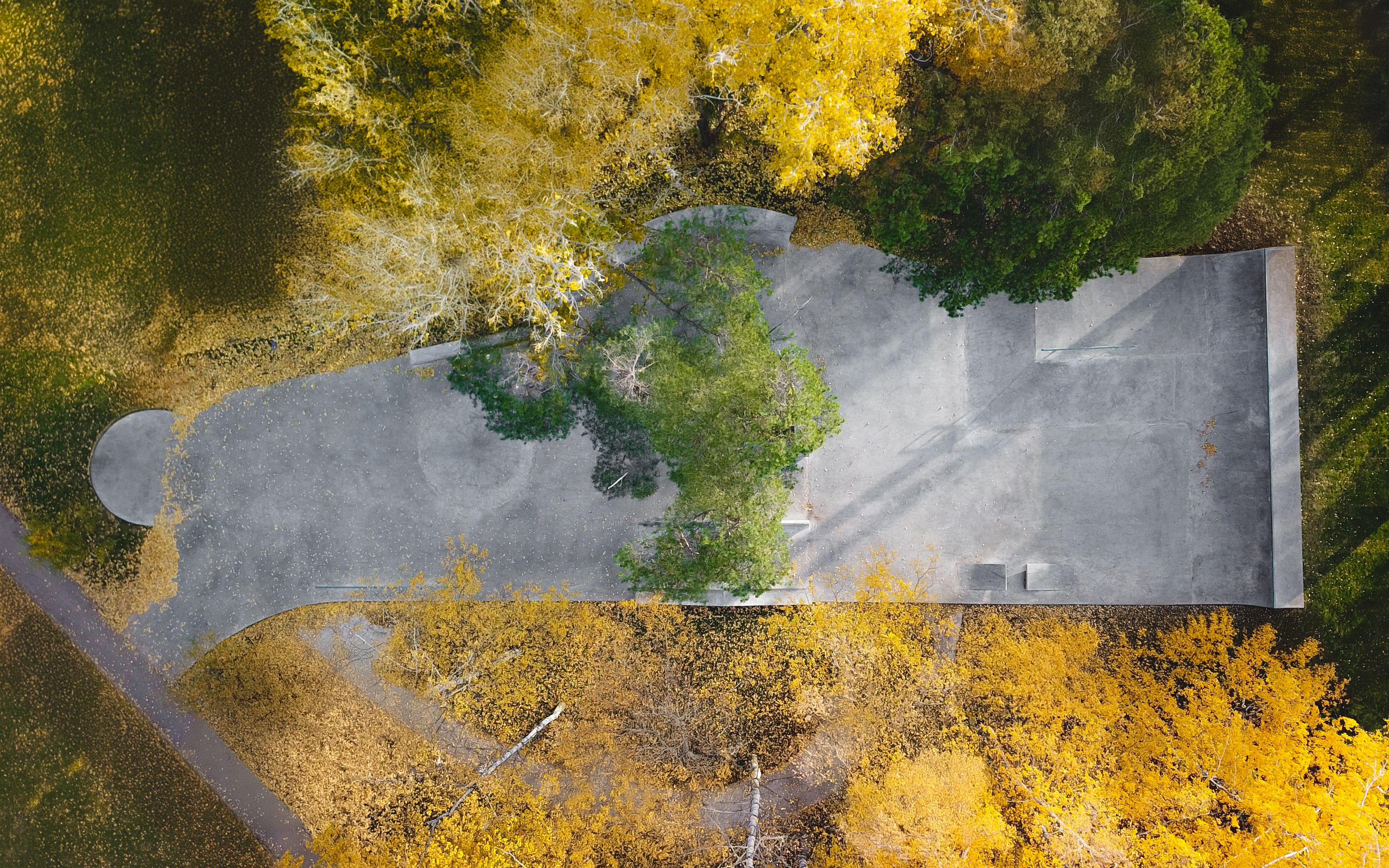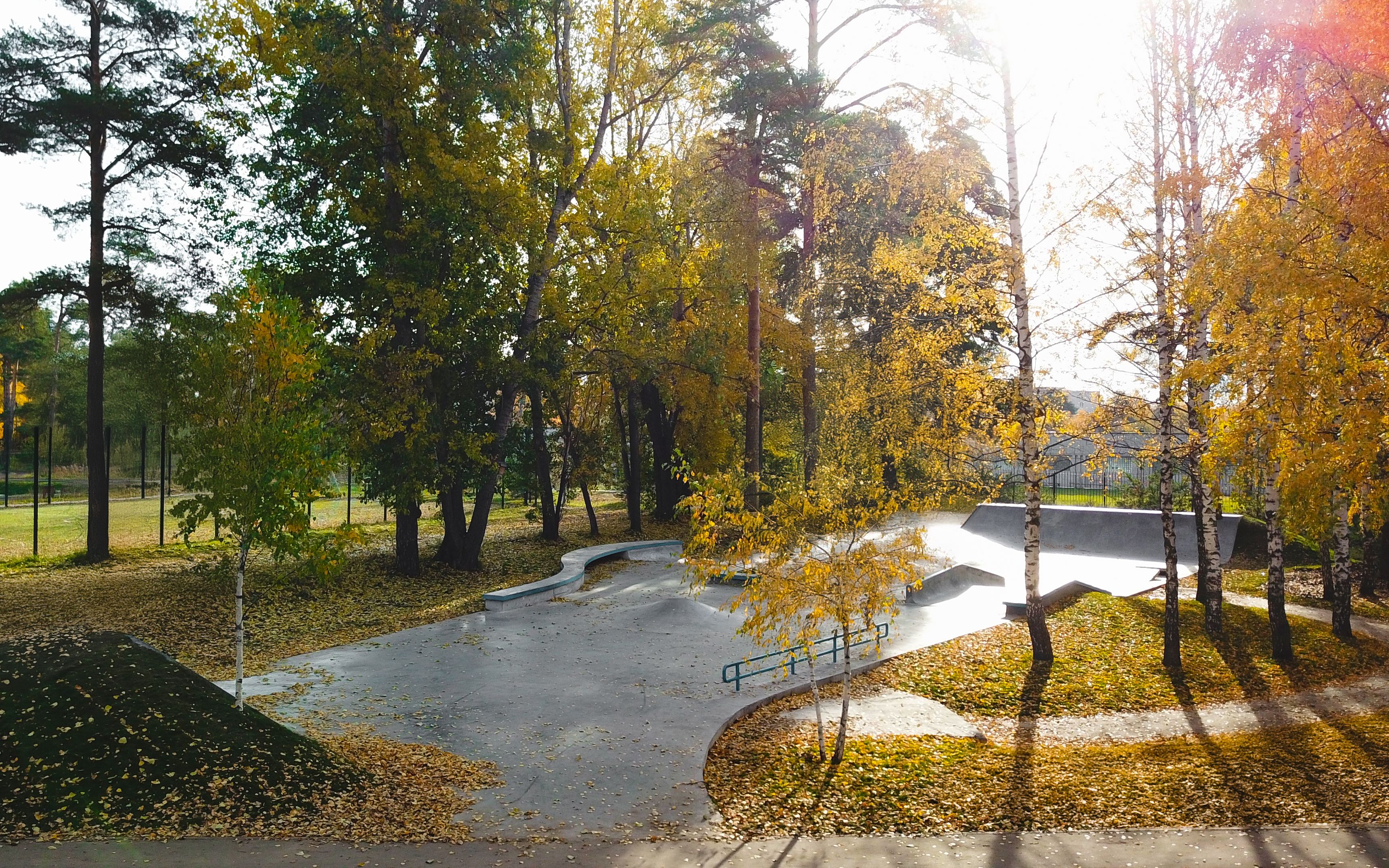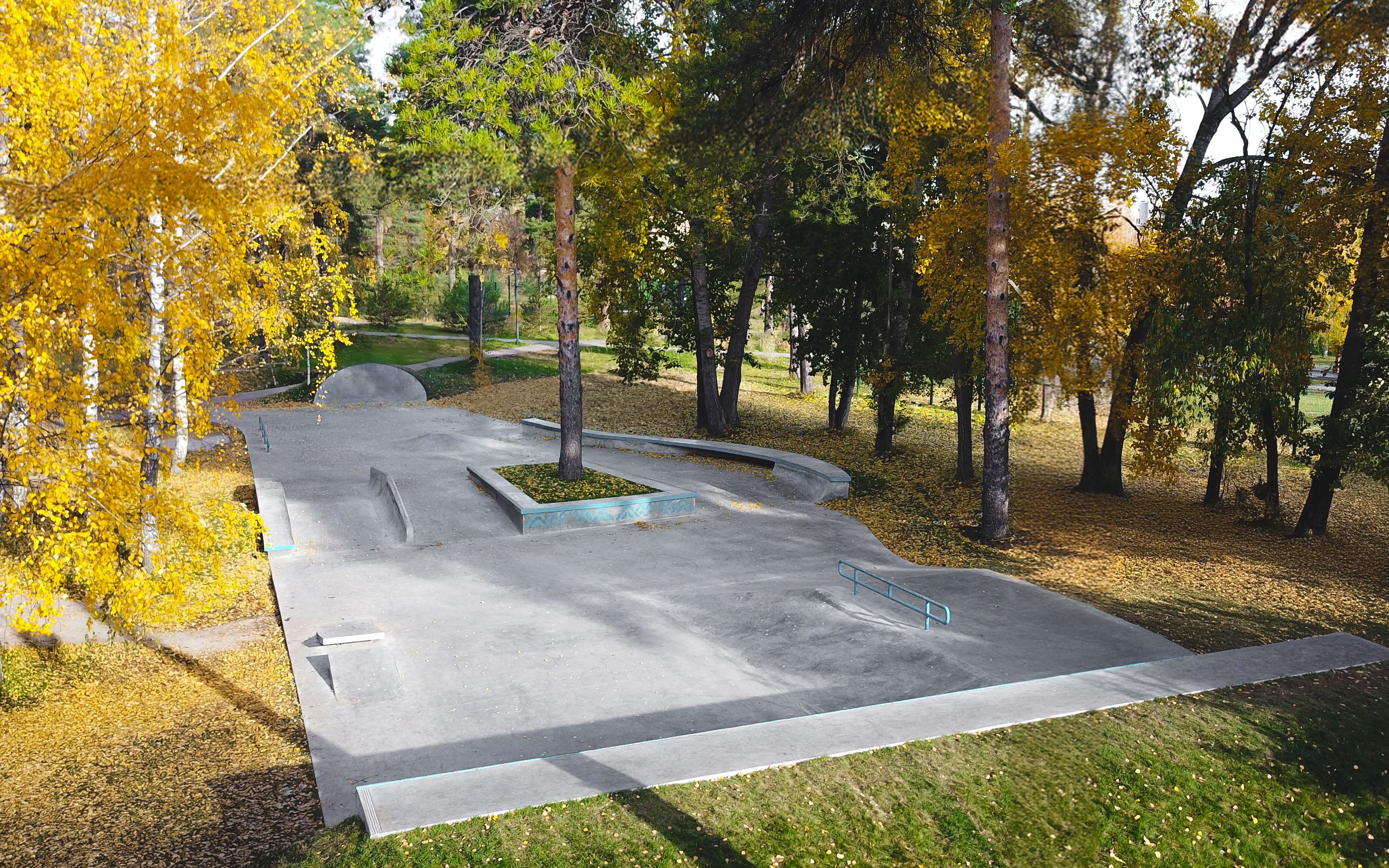 Скейт-парк гармонично вписан в природный ландшафт парка имени Урицкого. Территорию окружают высокие сосны и березы, которые создают естественную тень, сохраняя прохладу и комфорт в жаркое время дня. Архитектурные решения плавно сочетаются с окружающей природой, создавая баланс между современными спортивными зонами и естественной зеленью.
