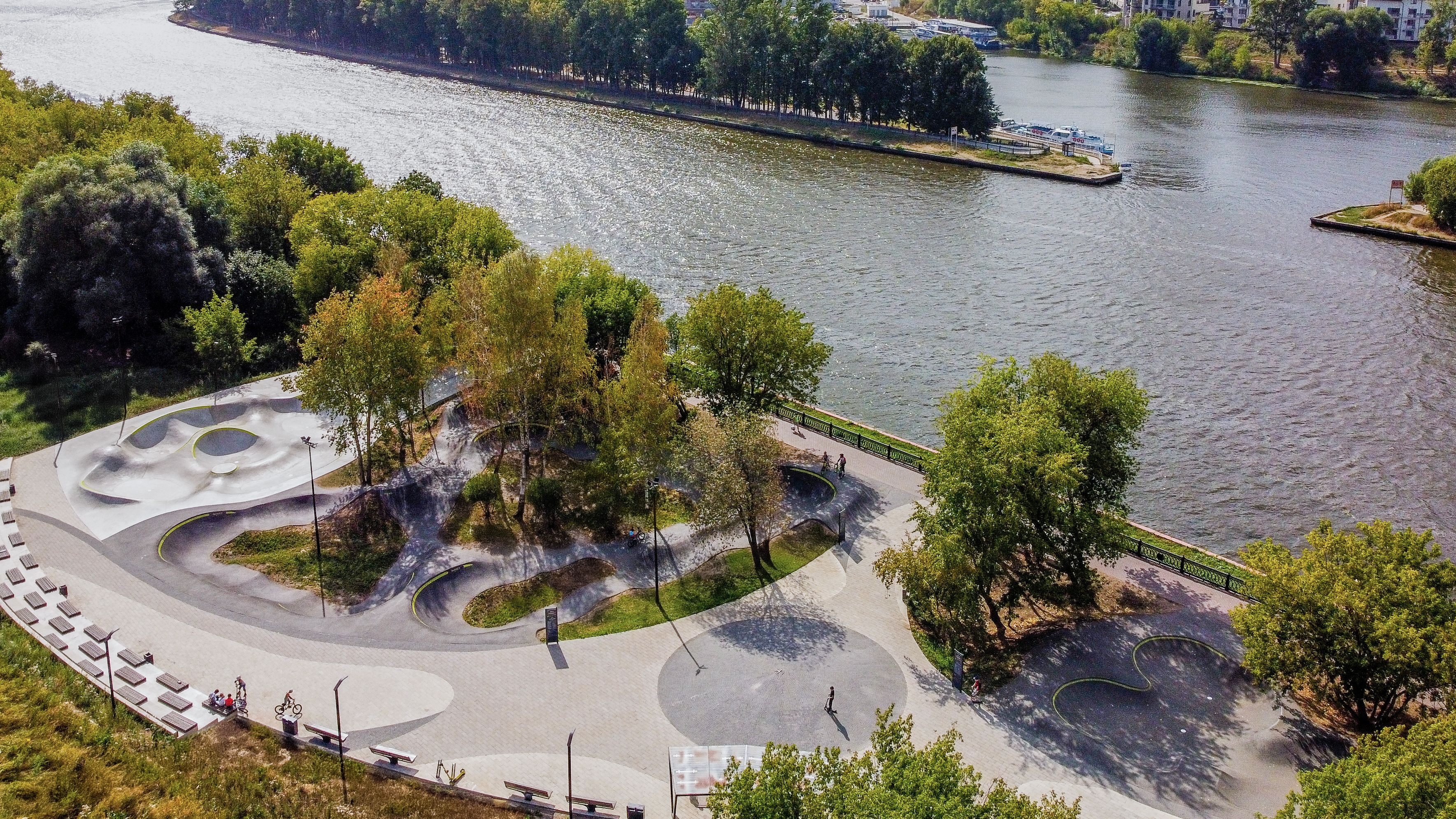 Парк "Экоберег" в Химках — пространство, где спорт и природа гармонично соединяются, создавая место для активного отдыха и спокойного досуга. Реализованный в 2021 году, этот проект стал отправной точкой для создания сети экстрим-пространств в Московской области. Основой программы благоустройства стала концепция, предложенная Legato Construction, в которой экстрим-площадки делятся на три категории: S, M и L. Такой подход позволяет райдерам разных уровней подготовки постепенно развивать свои навыки, начиная с простых объектов категории S и переходя к более сложным элементам площадок M и L.